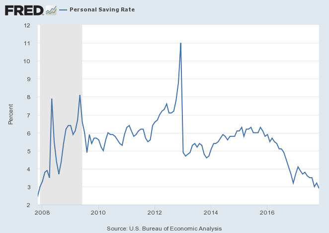 - American’s are saving as much as they did during the Recession. That makes no sense, especially considering that we are supposedly in an “Economic Boom”