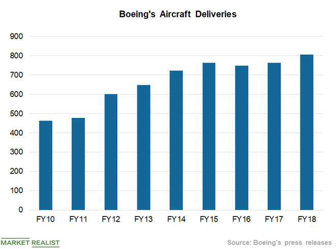 The company delivered 806 jets over the course of 2018, surpassing 2017 metrics by 5.6%. The increase in deliveries allowed the company to beat on revenue by 14.3%, further fueling the stock to new highs. For 2019, the company expects to deliver ~900 planes, which will represent a 10.3% increase in revenues in best-case scenarios.