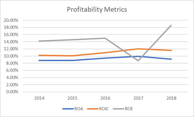 Alphabet has a strong financial standing, with a 23.4% year over year revenue growth, and 2.5x growth in net income. They have strong gross margins, with a 56.48% metric for 2018 and a 22.5% net income margin. Profitability metrics are also strong, with 9.1% ROA, 11.61% ROIC, and a 18.62% ROE.