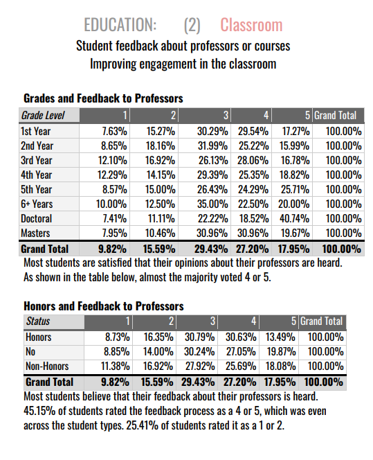 [PROFESSOR ENGAGEMENT WITH STUDENTS] Color density à bubble graph. Comparing grade level to engagement preferences. Then breaking that engagement down into want the students prefer, assigning numbers without overwhelming the density graph.