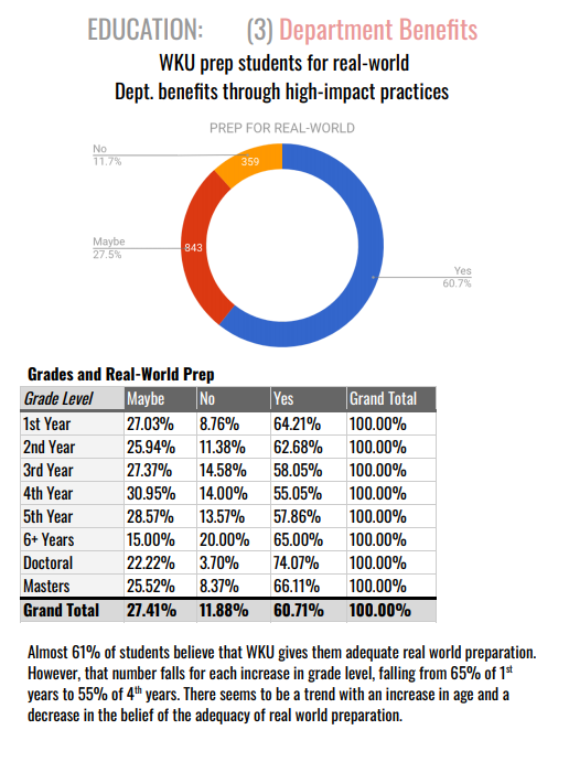 The beginning of the PDF report was a demographic survey of the students – where were they coming from, what were they involved in, and how did that impact their experience at WKU?