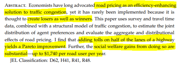 - Pricing just some of the lanes can help everyone, without requiring everyone to pay the toll AND increases social welfare by $1,740 per driver per year.