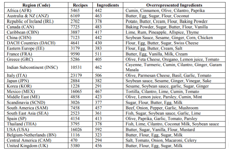 This paper discusses the evolution of culinary systems across the world, compiling recipes from 25 different world regions to study statistical patterns and usage of ingredients over time.
