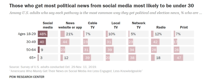 I think there is a crossover between social media and news apps too. Most news sites post their articles on Twitter — thus, I would estimate that actually ~2/3rds of young people get their news from social media.
