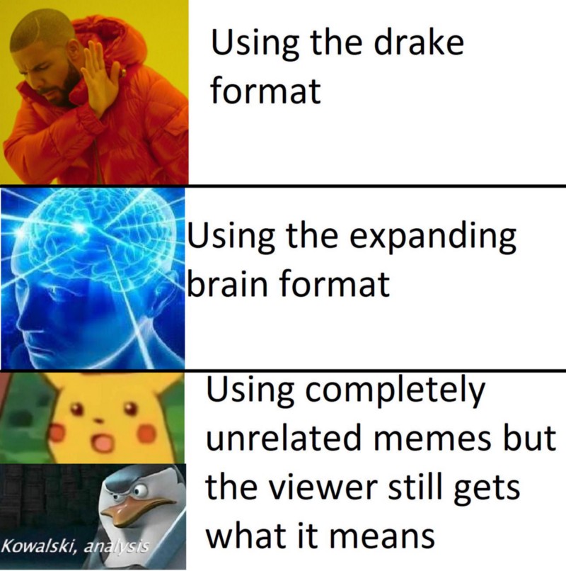 Memes are essentially based on this deep knowledge — you have to understand the context, the background, the ~meaning~. Some of them make sense, but others you have to know what the meme format means, like with the Area 51 meme.