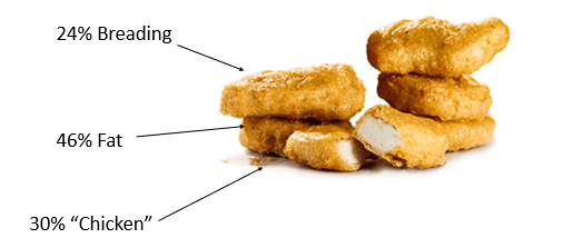 A chicken nugget is 70% bread and fat, 30% chicken.