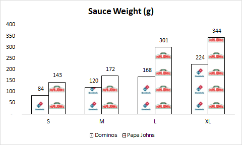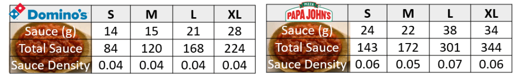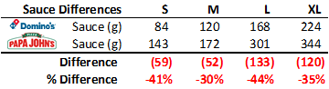 Papa John’s has ~40% more Sauce than Domino’s does, on average.