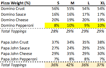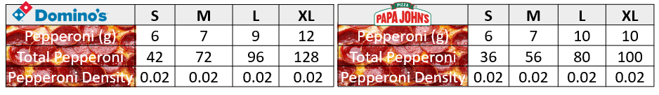 See below, Figure 12. Both companies had the exact same amount of pepperoni density.